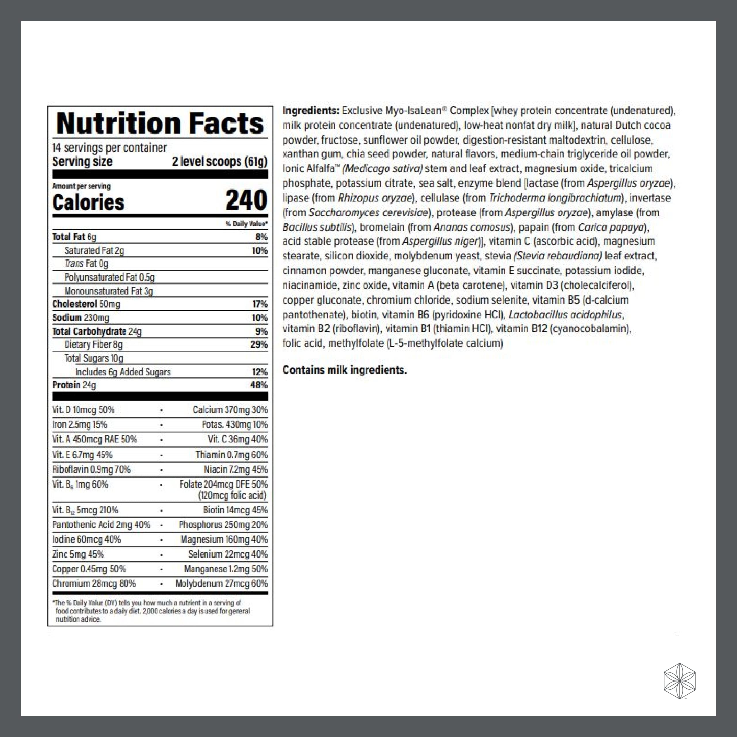 Isagenix Review - 16 Things You Need to Know - DietSpotlight Isagenix is a product line designed by the Isagenix Company and claims to help your muscles grow and help you lose weight. This meal-replacement supplement consists of 24 grams of protein and 23 vitamins. You can mix Isagenix shakes with milk or water and is a great meal replacement shake because it is low in fat, cholesterol, and sodium.