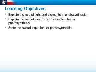9.2 Photosynthesis - Lesson Overview Photosynthesis takes place inside organelles called chloroplasts. Chloroplasts contain saclike photosynthetic membranes called thylakoids, which are ... Biology 8-3 The Reactions of Photosynthesis. Inside a Chloroplast. Chloroplasts contain thylakoids—saclike photosynthetic membranes. Chloroplast. Single. thylakoid.